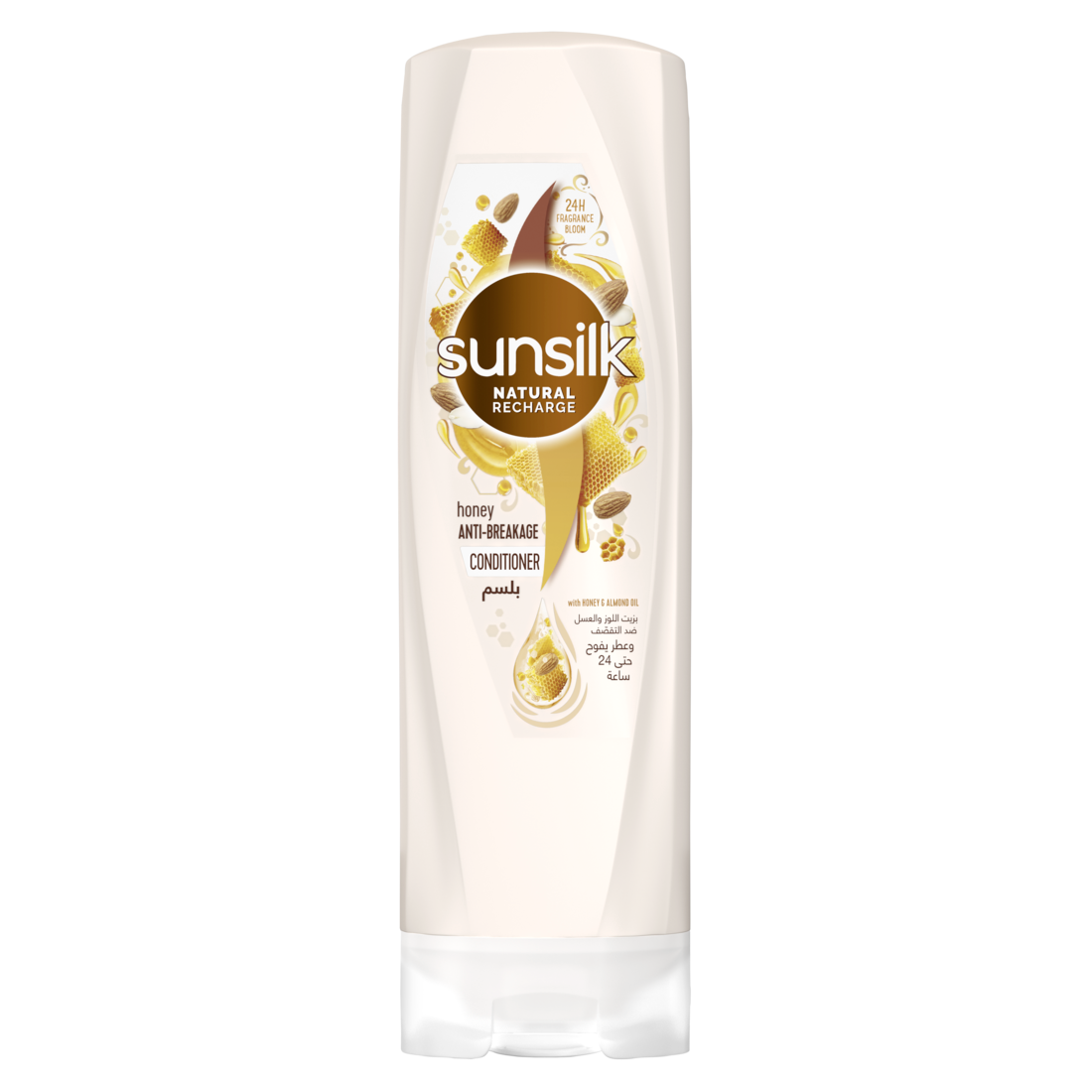 هل تعاني من خشونة الشعر وجفافه؟ هل أنت مستعد لاتخاذ الخطوة التالية لإصلاح الشعر التالف؟ هل ترغب في الحصول على شعر ناعم ومحمي من التجعد ومرطب؟ لا مزيد من البحث! تقدم صانسيلك مجموعة العسل المضادة للكسر. يحتوي البلسم على مكونات طبيعية مثل اللوز والعسل. تركيبة بلسم الشعر الحصرية لدينا تغذي شعرك بعمق وتقويه، مما يجعله أقوى بخمس مرات من الاستخدام الأول.* اشتهر العسل منذ قرون بخصائصه المغذية للعناية بالشعر. يُعرف زيت اللوز بتغذية الشعر وإعطائه نعومة وحريرية. بفضل فوائد اللوز والعسل، ستحمي هذه التركيبة شعرك وتغذيه وتمنحه نعومة مذهلة وتجعله ناعمًا كالحرير. تطلق تقنية إصلاح الشعر الفريدة لدينا دفعة من الرائحة في كل مرة تلمس فيها شعرك الأقوى. استمتع برائحة مذهلة تدوم لمدة 24 ساعة!** للحصول على أفضل النتائج، استخدمي شامبو وبلسم صانسيلك متبوعًا ببديل الزيت وكريم التصفيف. طبيعي وحيوي ومليء بالألوان والروائح، تقف صانسيلك جنبًا إلى جنب معك في كل خطوة على الطريق. مع ما يقرب من 200 عام من الخبرة المهنية في كل زجاجة، سواء كان الأمر يتعلق بإدارة تجعيد الشعر أو زيادة حجمه أو التحكم في التلف أو فرده أو تنعيمه أو حماية لونه، يمكنك الاعتماد على Sunsilk لتحقيق النجاح في هذا المسعى. تصنع Sunsilk منتجات للشعر ستستمتع بتجربتها واستكشافها واستخدامها واكتشافها. أياً كان ما يريده شعرك، ستساعد مجموعاتنا شعرك على مواكبة روعته. مع Sunsilk بجانبك، انتقل بلعبة تصفيف شعرك إلى المستوى التالي. * باستخدام النظام مقابل الشامبو غير المرطب ** باستخدام نظام Sunsilk